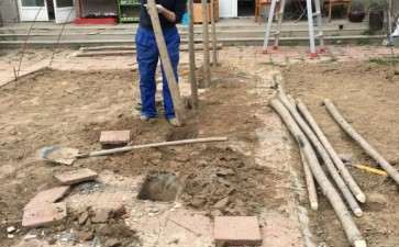 没下雨赶紧把花架做起。