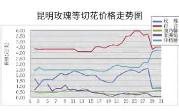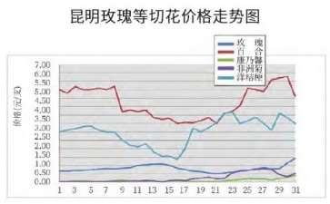近几年主要鲜切花价格在上升通道中,尤其是2021年价格上涨明显。对云南鲜切花批发市场监测统计,2021年玫瑰、康乃馨、非洲菊、洋桔梗、百合等鲜切花综合均价较上年增长12.41%,情人草、满天星、勿忘我三大配花均价同比增长2.56%。