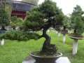 一、自然式树木造型。盆树极像自然界的阔叶树木,树干笔直向上,枝梢横斜上挑,树冠虽纷繁而又不显零乱,既非云片也非云朵,既无j角形样式更无大屋顶形状,这种虽由人作却宛若天成的造型,显示了作者独运之匠心。