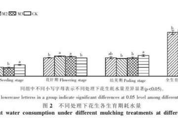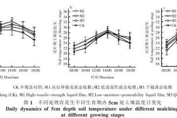 摘 要:针对目前多数液态地膜保水保温效果不显著的问题,研制和筛选更优的液态地膜,以期提高液态地膜增温保墒效果是目前液态地膜研究的一个方向。 为了探究更加有效的液态地膜,2014 年 6~9 月以“白沙 1016 号”花生为试验材料,在沈阳农业大学水利学院试验场旱棚内进行花生盆栽试验,对比研究了高拉伸强度液态地膜(M1)、低透湿性液态地膜(M2)、普通液态地膜覆盖(M3)和裸地对照 (CK)4 种不同处理下 5cm 处土壤温度 、花生的耗水量 、产量和水分利用效率 。