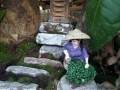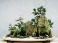 再耐心修剪、培育,一年后即可初步成型。 茶树老桩盆景定植成活后即可进行正常养护。注意盆土不可太干,但也不能积水。施肥不可太多太勤,一般每年施一次追肥即可。每年可适当修剪2次,保持完美的造型。 另外还可在盆土表面铺苔藓,放置陶瓷人物、动物、房屋等小配件。