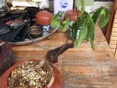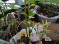 个人看法是不是水说多了!多喷水少浇盆水。盒土偏干易生根,湿了闷根,树干可多喷水但是不要流进盆土里!