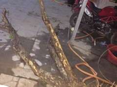 潜水三个月,6.27日在绿化上高压的一支重瓣大花石榴下山桩,如图,直径三厘米多,半个月就生根了,现在也一个月了,锯下来上盆了,觉得双杆也不错,就是不知道具体该如何操作,求各位吧友指点指点(这根枝子长的比较歪也比较弱,就算我不剪也会被园林大叔修剪掉,勿喷)