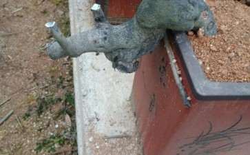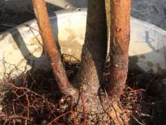新入坑,买了两颗下山桩试试,圆盆把树尖头插入土中。红土+腐殖土种下,期待成活了。