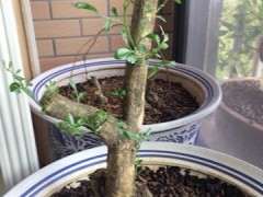 其实火棘管理很粗放的,但是它毕竟是有生命的,要根据它的生长习性来。做好这些前期功课,就把它交给时间了,这棵桩是一月份上山挖的,当时在我们这里正是冬天,春天来后我把它搬到院坝里了,任它风吹日晒,感觉前久长期没下雨时隔半人月浇了下水,现在它已经长成这样了: