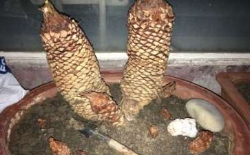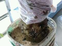 到家后用清水泡根两个小时,因没地,用水果筐养坯。土用的是菜园土,加了三分之一的从山上带下来的腐叶土,把土混好放在筐里,直接用自来水灌水同时用木棍把水和成稀泥浆,再把桩放到泥浆里使劲往下压(这样栽的好处在于树根与土充分结合,不易空根,提高成活率)然后固定大概形态,表面上捂上干土就算是初步栽好了。