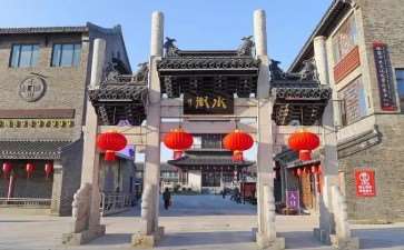 以南北向蜿蜒曲折的河道水系作为主要的景观轴线和水上交通游线,同时布置东西向3条景观次轴线,形成盐商会馆、天水广场、傍水人家三大围合空间,依次形成院落空间、广场空间及街巷空间3种水街空间形态。