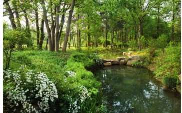 该类水体水量丰沛,水体比较平静,可根据造景需要选择各种类型的湿地植物。