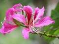 2.黄山紫荆,又称浙皖紫荆。叶近革质,卵圆形或心形,叶背光滑无毛。先叶开花,花簇生老枝上。荚果厚革质,沿腹缝无窄翅。果10月成熟,红紫色。