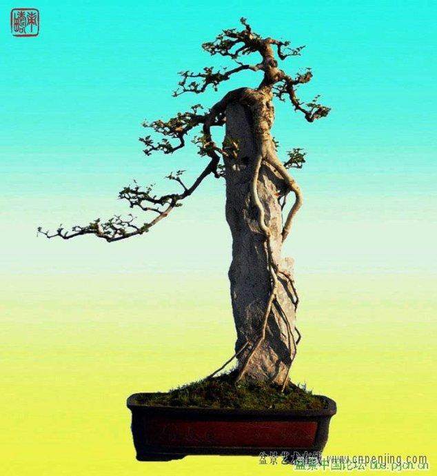 霞浦树木盆景在配盆上多用宜兴紫砂盆,并注重盆的长宽高与盆树相谐,植树位置在盆长的四六开C或三七开)点上,面向典型的树选长方盆、椭圆盆,面向不突出的树选圆盆。