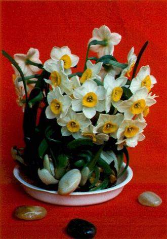 水仙花为寒性花卉,它的自然生长规律是秋植,冬花,春花(立春),温度、光照和水分是它的生长必需条件。要使水仙干头水养后在春节时开花,根据上海的气候和习惯,应在11月底至12月中旬时进行水养之。不要过早,也不要过迟。因为过早,上海自然温度尚高,叶片容易徒长,消耗养分又多,长出来的花苞易枯萎。如水养过迟,由于自然气温降低,很难发根和长蕾,容易干枯,有的虽也长些叶片和孕出花蕾,但最终还是因温度不够而枯萎。