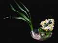 造成有蕾不开的另一个原因,是环境不固定,温度不稳定,造成生殖机能受阻所致。当水养的生出叶子和长出花苞时,有的喜欢从室内到室外,从内阳台到外阳台等处搬进搬出,或朝出暮进,冷冷热热,忽冷忽热,这样由于经常性的温差悬殊,就容易造成有蕾不开和枯焦。当然有的有了花蕾放在室内窗沿边,夜间遇特殊低温时,因水仙盆景贴近玻璃传冷快,亦易冻焦花苞而开不出花。还有的把水仙盆景放在见不到阳光的室内或电视机上面,等等,所有这些也是造成不长叶,或只长叶不孕蕾,或有了蕾不开花的原因。
