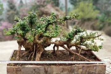 茶梅(C.Sananqua)为山茶科、山茶属,它花姿绰约,花色艳丽,与同属的山茶花、云南山茶等同为我国传统的园林观赏花木。以茶梅为素材制作盆景并不多见,中国盆景艺术大师胡乐国先生独具慧眼,另辟蹊径,潜心制作的这一茶梅盆景满树繁华,蔚然大气:红花绿叶相映生辉,花苞满树春意正浓,特将此作封面刊出,让我们共同去探寻春的气息,春的脚步…..