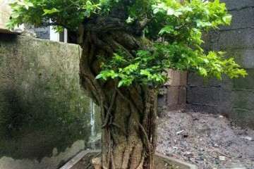 该茶梅盆景为常见的大树造型,主干斜卧而上,收发有致,强健有力。根基硕壮,树皮润泽,配盆深厚沉稳,盆面绿苔如茵,正因为扎根丰厚肥沃的土地,才勃发出顽强的生命力!看,干身分枝繁茂,却不乏空灵通透;枝条细软却不显孱弱;扑面而来的满树花蕾热烈似火,浓浓的春意给人强烈的春之感悟!严冬一旦过去,所有顽强不屈的生命便会逢春勃发!这是造化之力,是造化的恩赐,不可抗拒也无从抗拒!