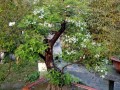 三、造型白刺花盆景的造型可根据树桩的形态加工成直干式、斜干式、曲干式、卧干式、临水式、双干式、一本多干式等多种形式。树冠既可加工成规整严谨的云片式、馒头形,也可制作成飘逸潇洒的自然式。造型可在生长季节,新枝尚未木质化或刚刚木质化时进行,此时枝条柔韧性好,不易折断。