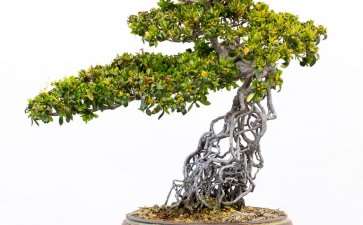 造型。根据株型修整成各种造型,通常的造型有伞形和宝塔形。前者要让下部主干多发侧枝,并能向四周延伸,造型时先用粗铅丝在盆上做成伞状骨架,再将枝条均匀分布其上,用塑料带绑缚。开花时花朵形成大花球。后者应从定干时开始修剪,先对底层枝条进行整形,再向上逐层修剪,最后使整个株型呈塔型。
