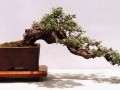 盆景与几座配合,曆来都很讲究,轻重方圆和大小高低,必须相称。其基本原则是:悬崖型盆景适用高几座,长方型和椭圆型宜用低几座,斗方盆和圆盆用一般高度的几座即可;长方几配长盆,方几配方盆,圆几配圆盆,高脚几配深口方盆,树根高几配深口圆盆,矮的配浅盆。几座的面应略大于花盆底部。
