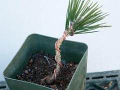 铝丝缠绕方向以顺时针为准,这样便于以后造型时右起弯,否则铝丝会松掉。上铝丝时必须把铝丝插到营养钵的泥土里进行固定,否则造型时,黑松小苗会与泥土分离,不便造型。