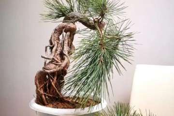 首先整理修剪黑松小苗,商品化的黑松小苗一般侧枝在主千上呈不规划的轮生枝,数量很多。通过修剪保留健康的侧枝便于造型,如果主枝不健康可用侧枝造型。整理黑松小苗的针叶,保留顶部一半的针叶,把老针去掉,这样便于造型时铝丝缠绕到位,同时也刺激黑松小苗来年茂盛生长。