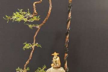 ⑧注意枝条的生长情况。提防枝条生得过猛失去比例,失却美感。枝条对树干的大小比例,没有基本准则,一般由作者的意念而定,苍劲老辣的大树式宜配壮大的枝条,飘逸潇洒的宜配以瘦小的枝条,注意段与段之间的差的比例,提防因为横枝的生长而造成首尾大小一样的回旋枝,失去枝条的节奏感。