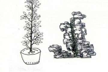 口图1-2认真审视自己所选石材的形态特征,选择树苗附在石上路线,打好腹稿,有绘画能力的作者可以直接画好创作草图