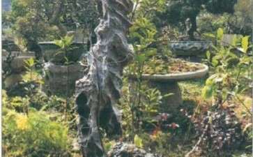 随着盆龄的增长,年功的积累,树干附石盆景会渐渐抹去人工痕迹,变得越来越自然,最后达到虽由人做,宛若天成的境界。