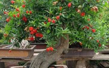 3.1树形石榴树枝较柔软,可盘扎成多种样式,盆栽造型的原则是:制作前胸中有数,制作时因树、因势造型,主次分明,具体操作上掌握主干宜曲不宜直,且弯曲有度,根干相符,藏中有露