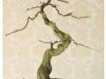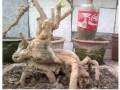 仔细想想,枸杞根的古老沧桑,和酒瓶的现代观念碰撞交织,才有了巨大的艺术反差,这反差本身就够夺目,更何况,将来花果成熟时候。